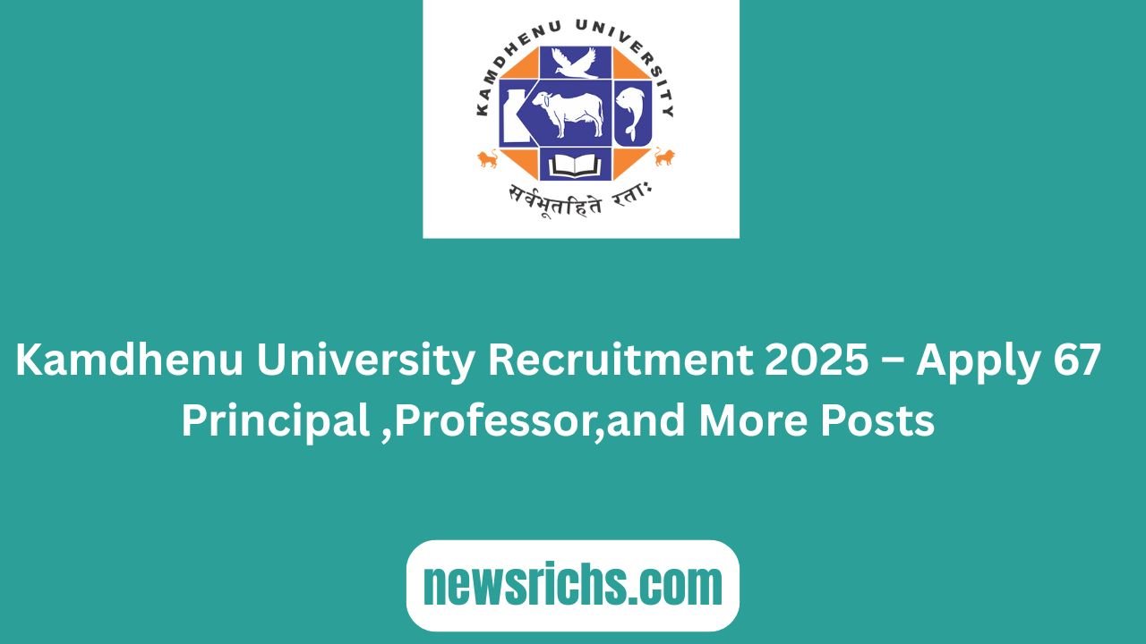 Kamdhenu University Recruitment 2025 – Apply 67 Principal ,Professor,and More Posts