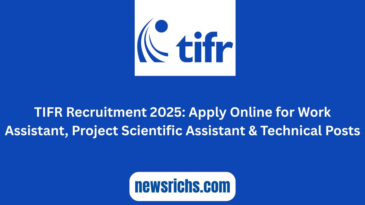 TIFR Recruitment 2025: Apply Online for Work Assistant, Project Scientific Assistant & Technical Posts